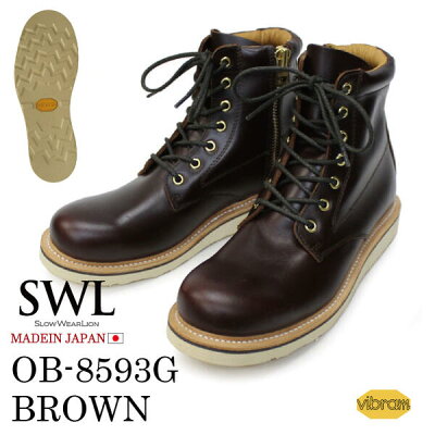 楽天市場 Swl Ob 8593h スローウェアライオン Slow Wear Lion ブラウン Brown クロムエクセルレザー プレーンミッドブーツ ワークブーツ 編み上げブーツ 国産 日本製 メンズ レディース サイドジップ ジッパー ビブラム 100 ラグソール ステッチダウン製法 本革 牛革